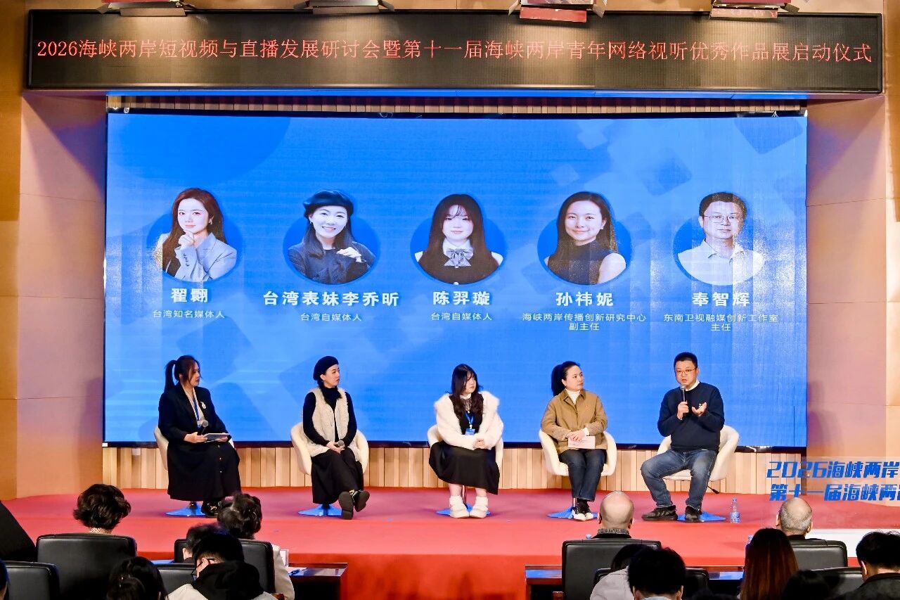 在研讨活动上,两岸嘉宾热烈讨论,争相分享自己的观点,努力通过交流来进一步推动两岸创作者通过短视频和直播促进两岸交流。同时,现场还举行了第十一届海峡两岸青年网络视听优秀作品展启动仪式。